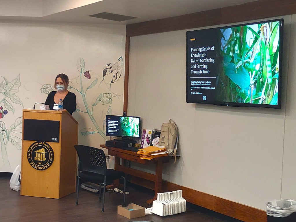 The Amplifying Native Voices in North Carolina History Project is a collaboration between the Museum of the Southeastern American Indian at the University of North Carolina at Pembroke, a historically Native American university, and the InHerit Program at the University of North Carolina at Chapel Hill. The project brings together scholars, museum specialists, and K-12 educators to create lesson plans and other educational materials. I worked with the project in 2020-21 as a content expert and held a presentation/ workship at their 2021 Teacher Institute for K-12 educators entitled “Planting Seeds of Knowledge: Native Gardening and Farming Through Time.”
